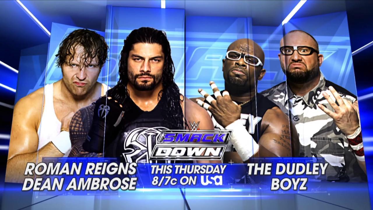 WWE anunciou noite passada durante o Raw, que Dean Ambrose & Roman Reigns irão enfrentar os Dudley Boyz na próxima edição do SmackDown.
